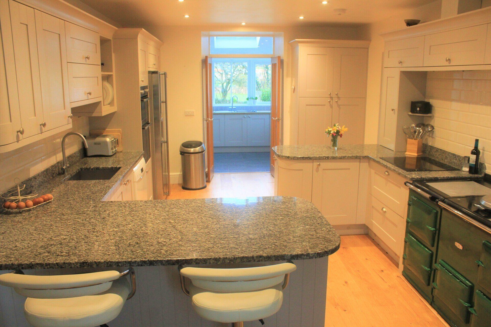 The granite farmhouse has 5 bedrooms comfortably sleeping 10 with double sofa bed upstairs for 2 additional guests if required.